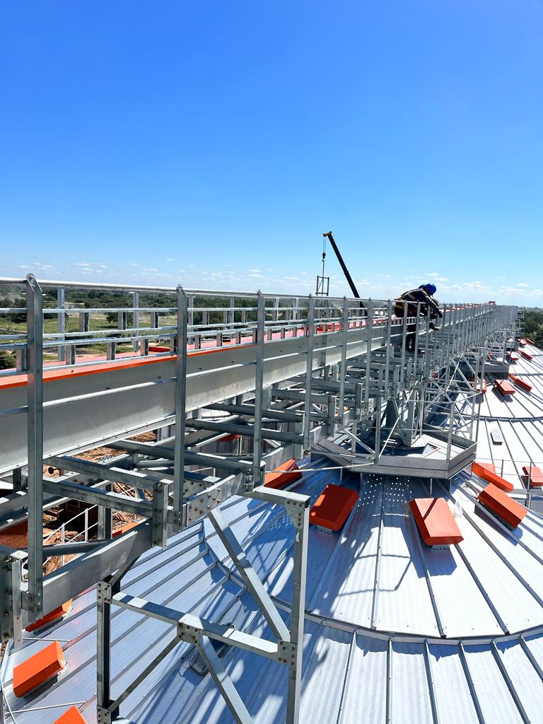 Instalaciónde escaleras de 100x60 mm en chapa calibre 18, en posición horizontal sobre la estructura de silos.