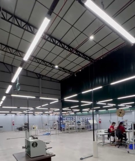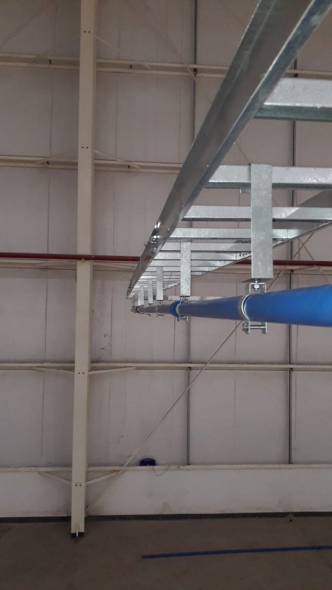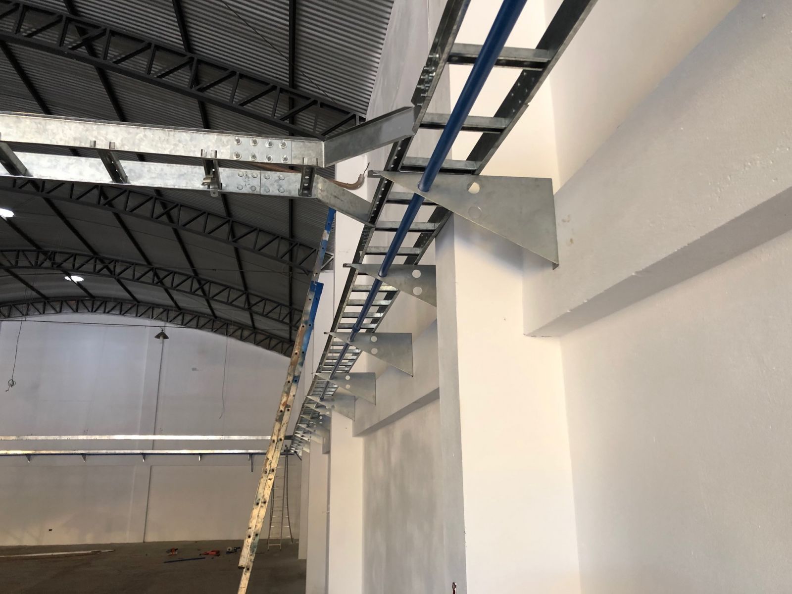 Estructura de bandejas tipo C de 50x50 mm para el sistema de iluminación de una fábrica textil en Ciudad del Este.